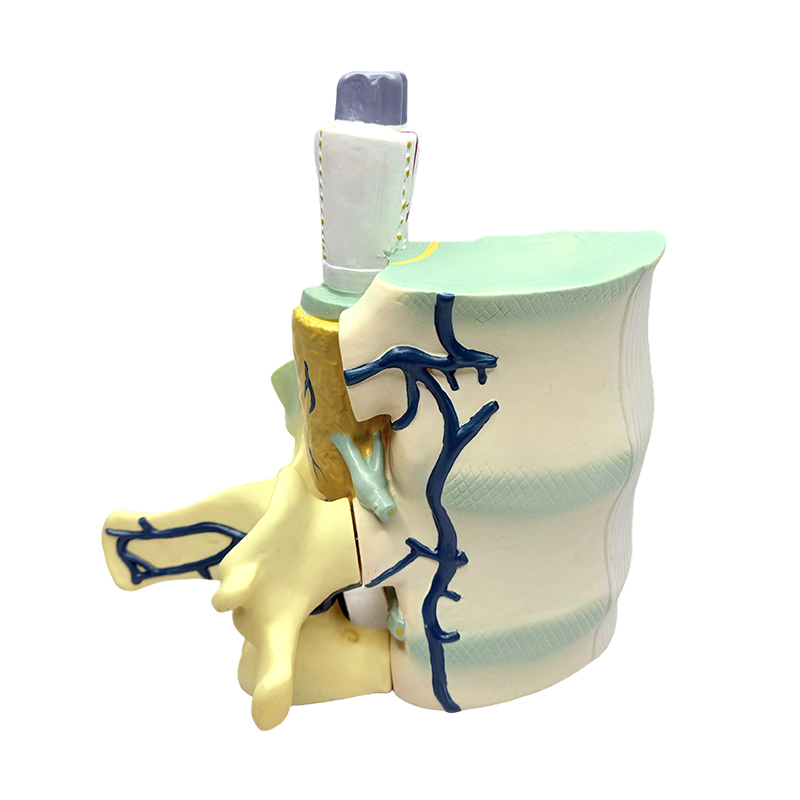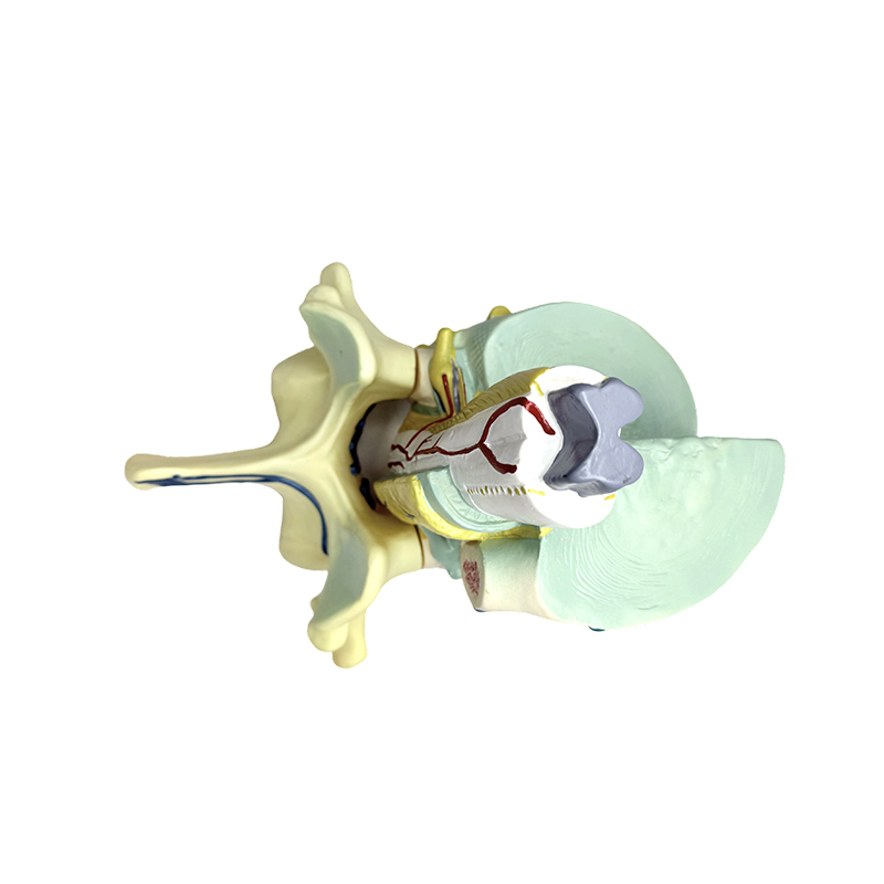 El modelo muestra la columna vertebral, la médula espinal, el disco intervertebral, el tronco nervioso simpático, los nervios espinales y los vasos sanguíneos, etc.