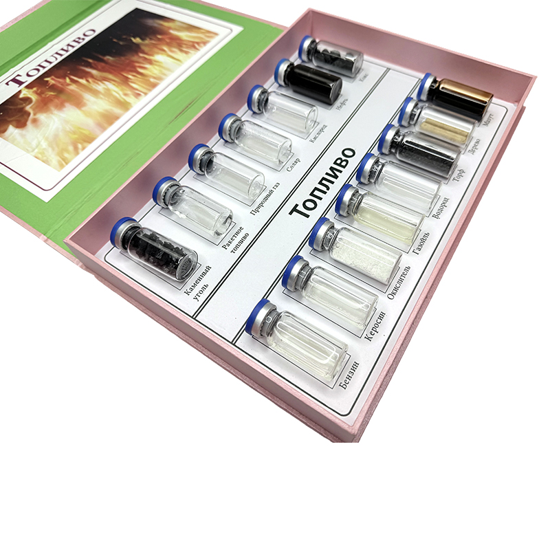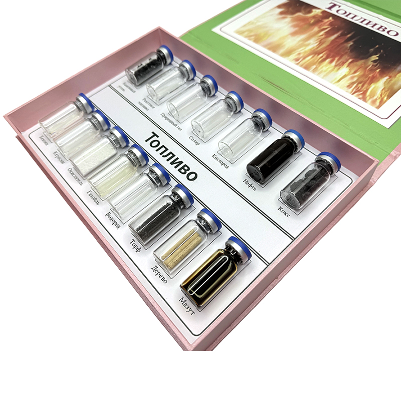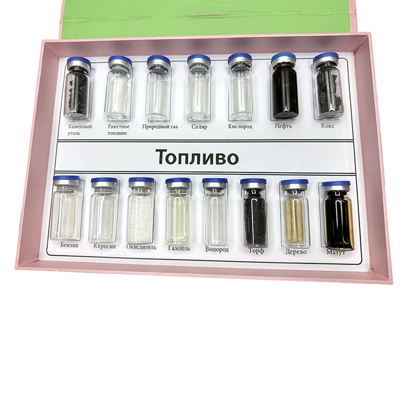 Consiste en 15 muestras de combustible, incluyendo gas natural, oxígeno, petróleo, gasolina, queroseno, oxidante, hidrógeno, turba, etc.