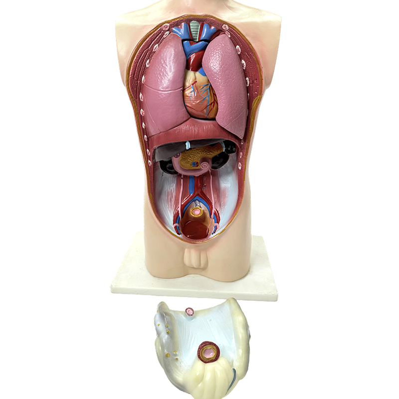 Este modelo se utiliza como ayuda docente para los cursos básicos de anatomía humana e higiene fisiológica, que es conveniente para que los estudiantes comprendan la posición, la estructura del estado y la relación mutua de varios órganos en el cuerpo humano. Se centra en los sistemas respiratorios, digestivos y urinarios.