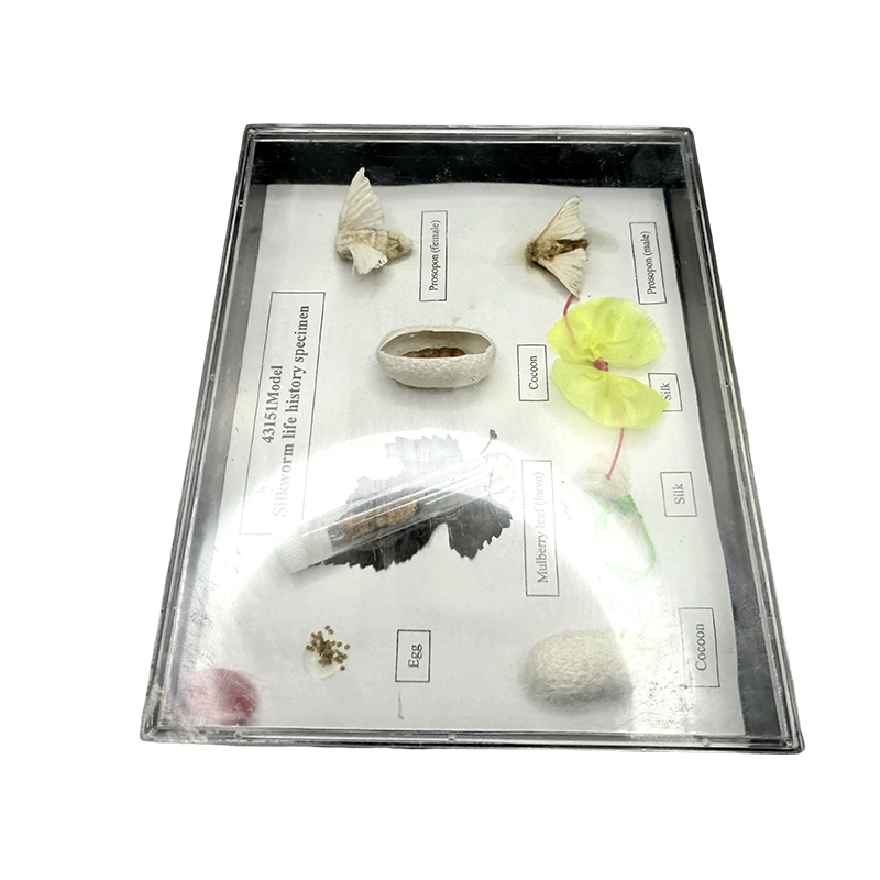 Para las clases de ciencias naturales de los estudiantes de primaria, a través del estudio de especímenes, los estudiantes pueden comprender la historia de la vida de los gusanos de seda.