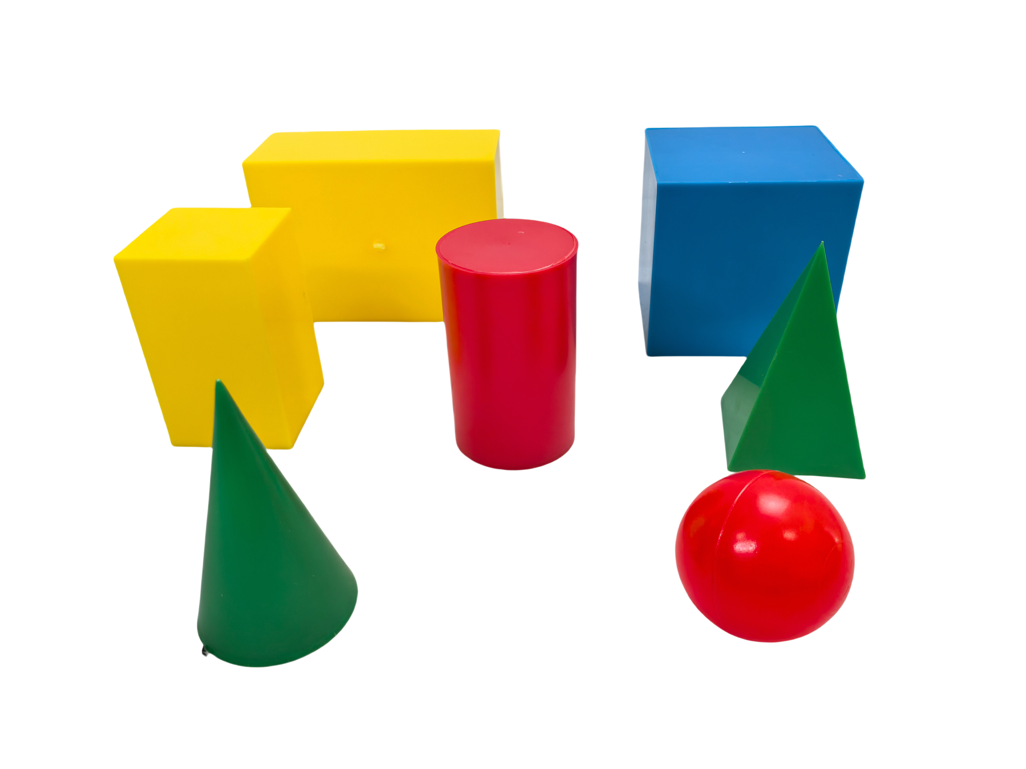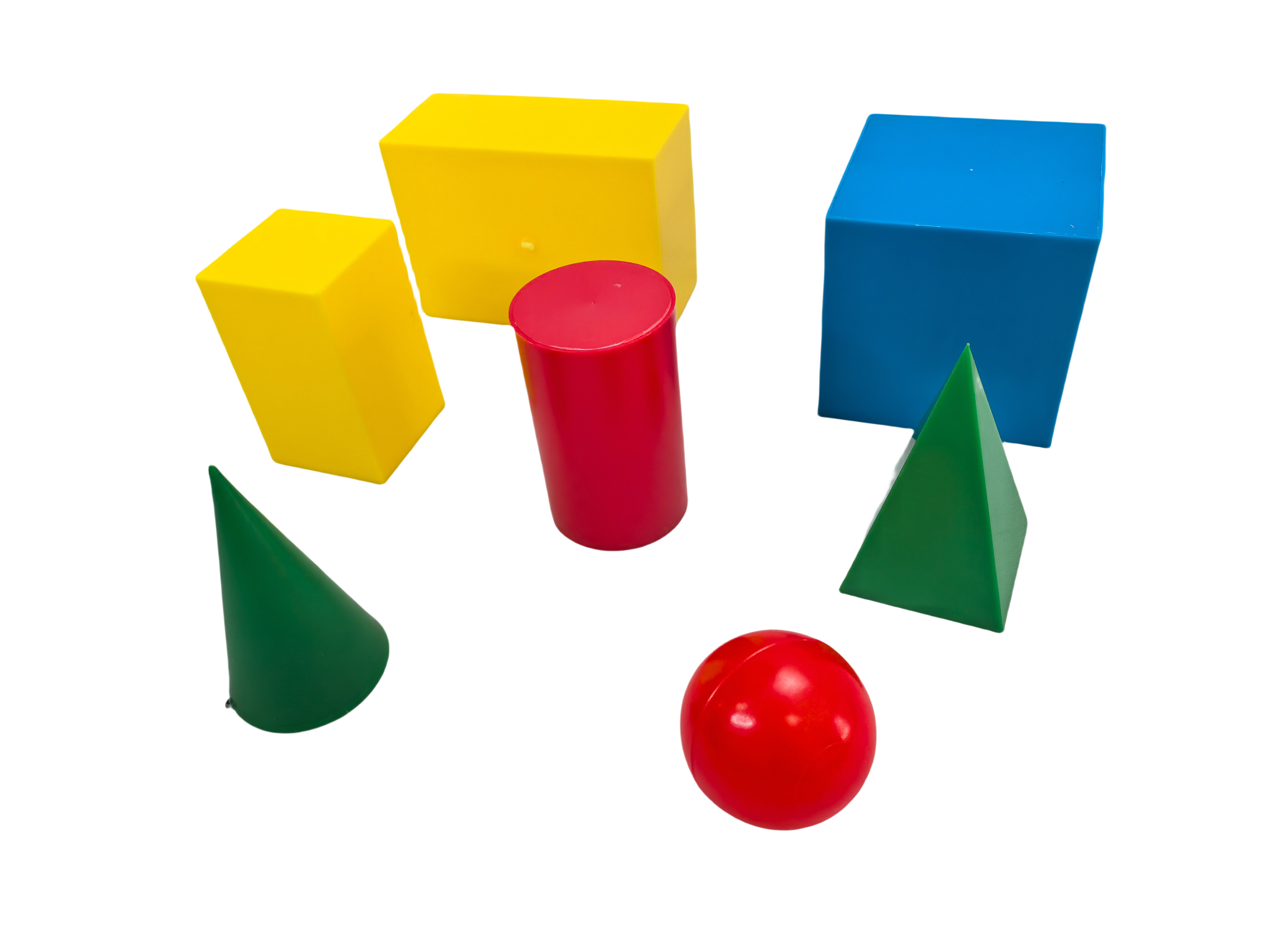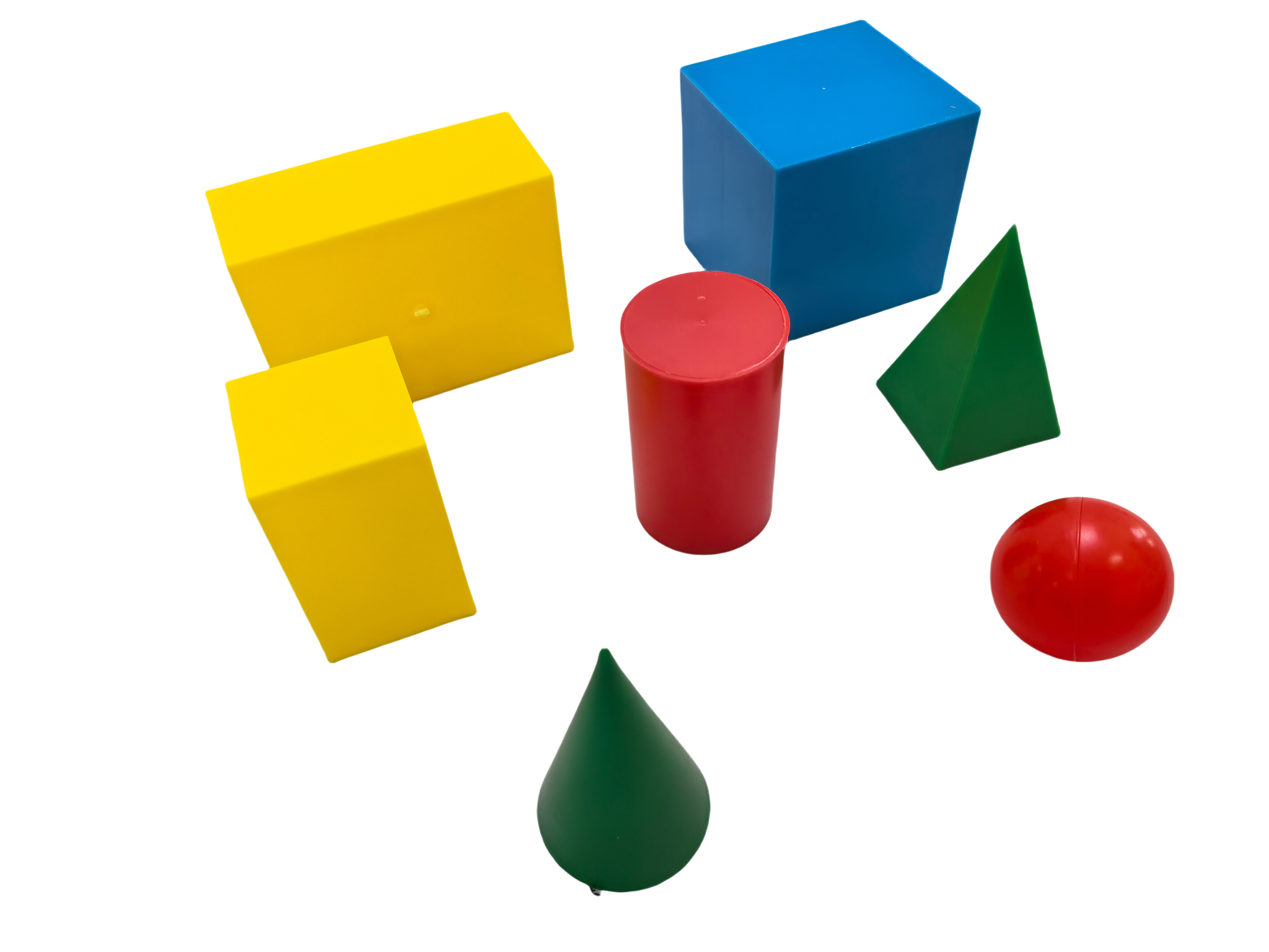 Conjunto de 7 piezas, que incluye círculos, cilindros, conos, cubos, prismas rectangulares, etc.