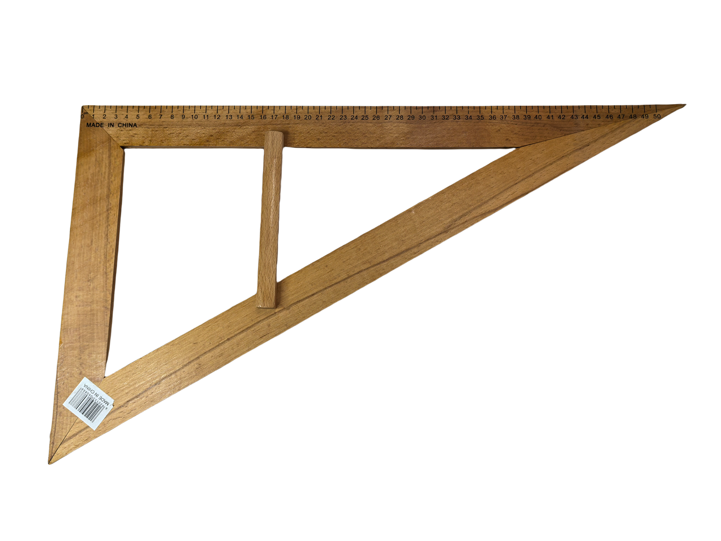 Incluyendo gobernante, protractor, triángulo isósceles, triángulo recto, brújula
