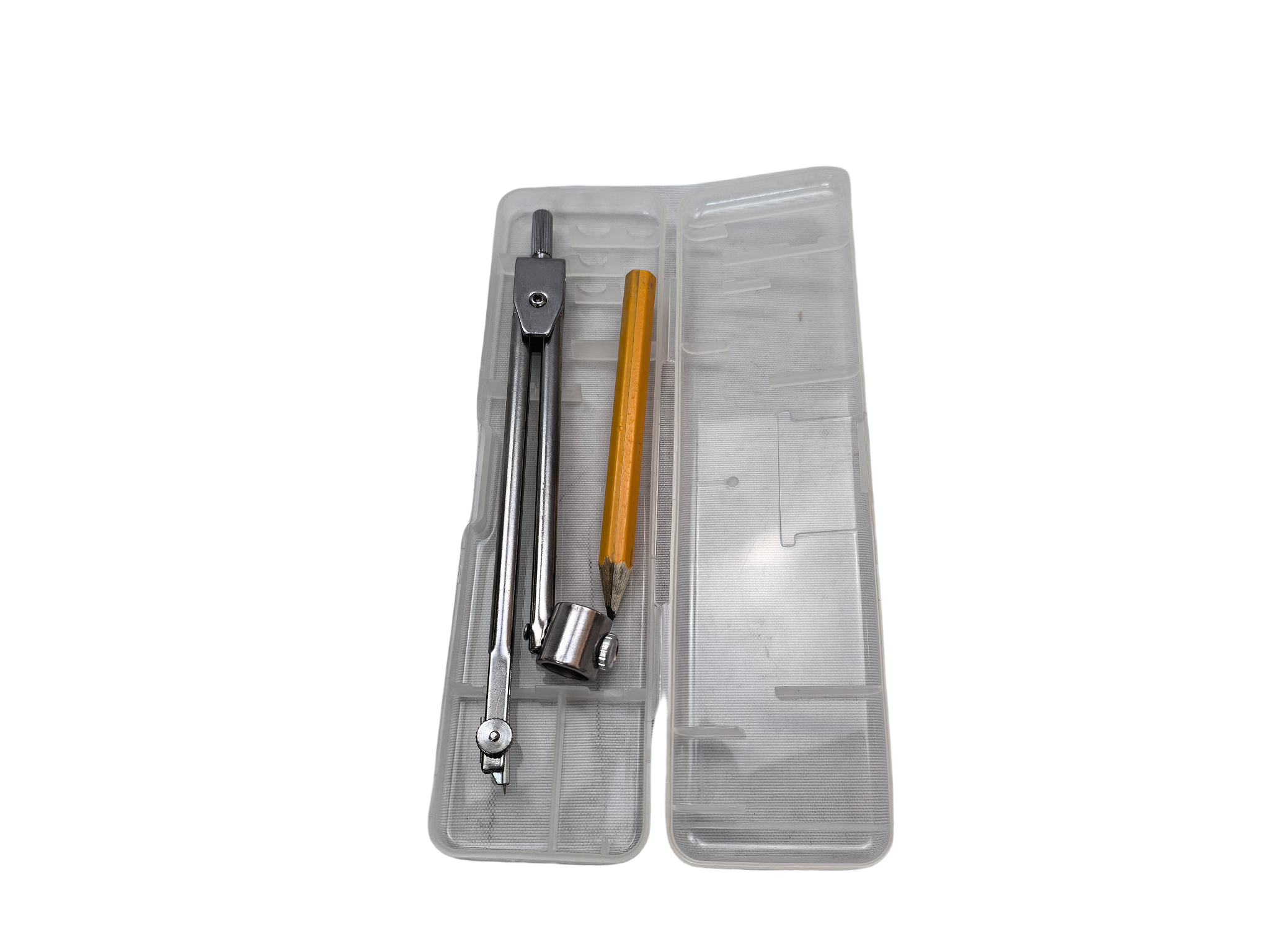 Compuesto por una brújula, punta de lápiz, pivote, piernas de brújula, etc.