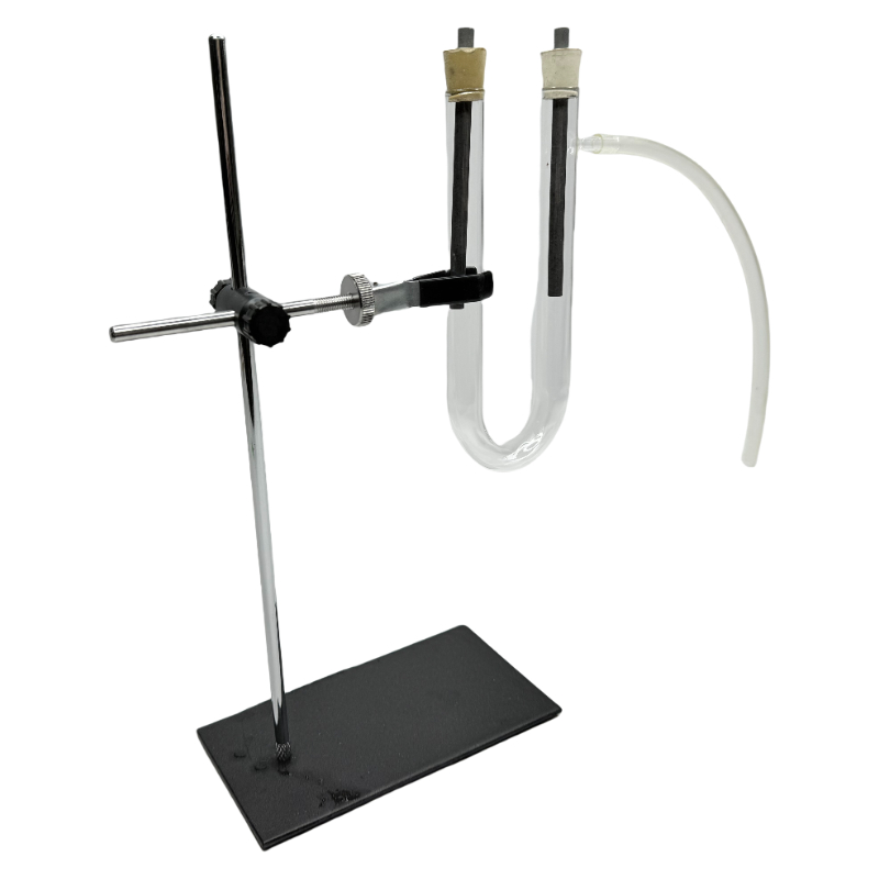 Soporte, base, abrazadera de tubo de ensayo, tubo en forma de U, tubo de goma, tapón de goma, electrodo de grafito, etc.