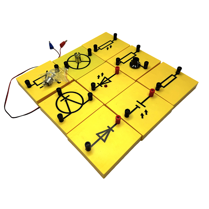Contiene termistores, fotorresistores, diodos planos, diodos puntuales, Diodos de luz constante y de pulso LED, transistores, bombillas de bajo voltaje, módulos de resistencia constante y variable, etc.