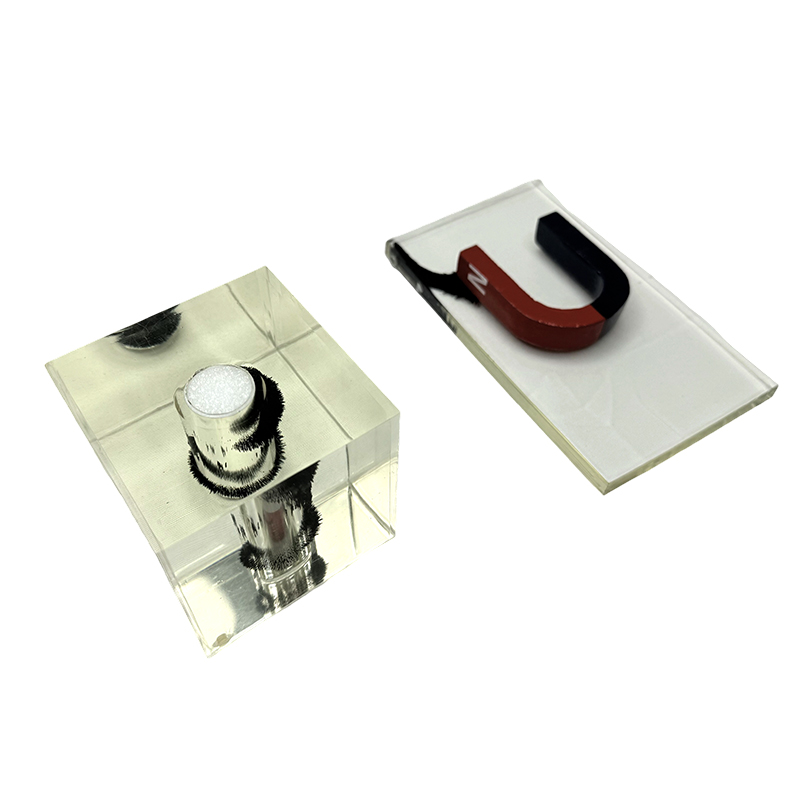 El kit incluye una placa transparente y un cubo con un líquido transparente viscoso, que contiene polvo magnético fino, imanes, etc.