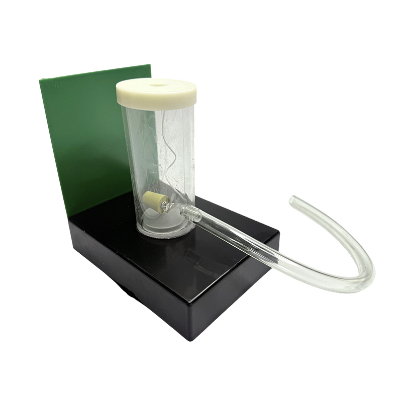 Tablero de fondo de plástico negro, tapón de goma, cilindro transparente de paredes gruesas, contenedor de alcohol, base, tubo de goma, etc.