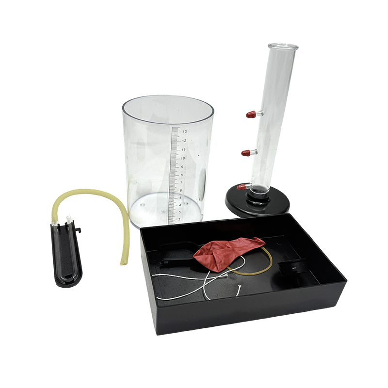 Tanque de agua, cilindro de medición, cilindro pequeño, asiento de cilindro, tapón de goma de agujeros pequeños, medidor de presión, banda de goma, alambre, etc.