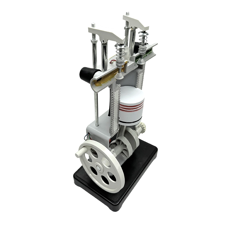 Este modelo se utiliza en las clases de física de la escuela intermedia. Su propósito es demostrar el diseño y el principio de funcionamiento de un motor de combustión interna carburada de cuatro tiempos. Ilustra la aplicación práctica de la primera ley de la termodinámica.