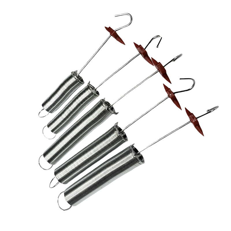 Un conjunto de 5 resortes con diferentes constantes de primavera con ganchos. Utilizado para demostrar la ley de la fuerza elástica